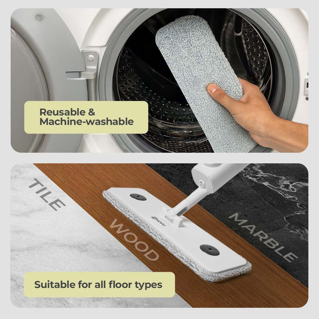 - 4️⃣ Wash & Reuse – Machine-washable microfiber mop pads for sustainable cleaning