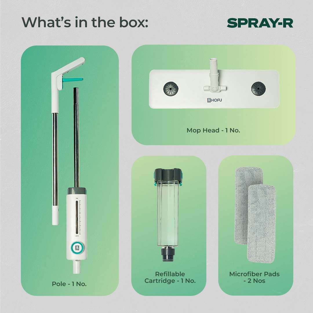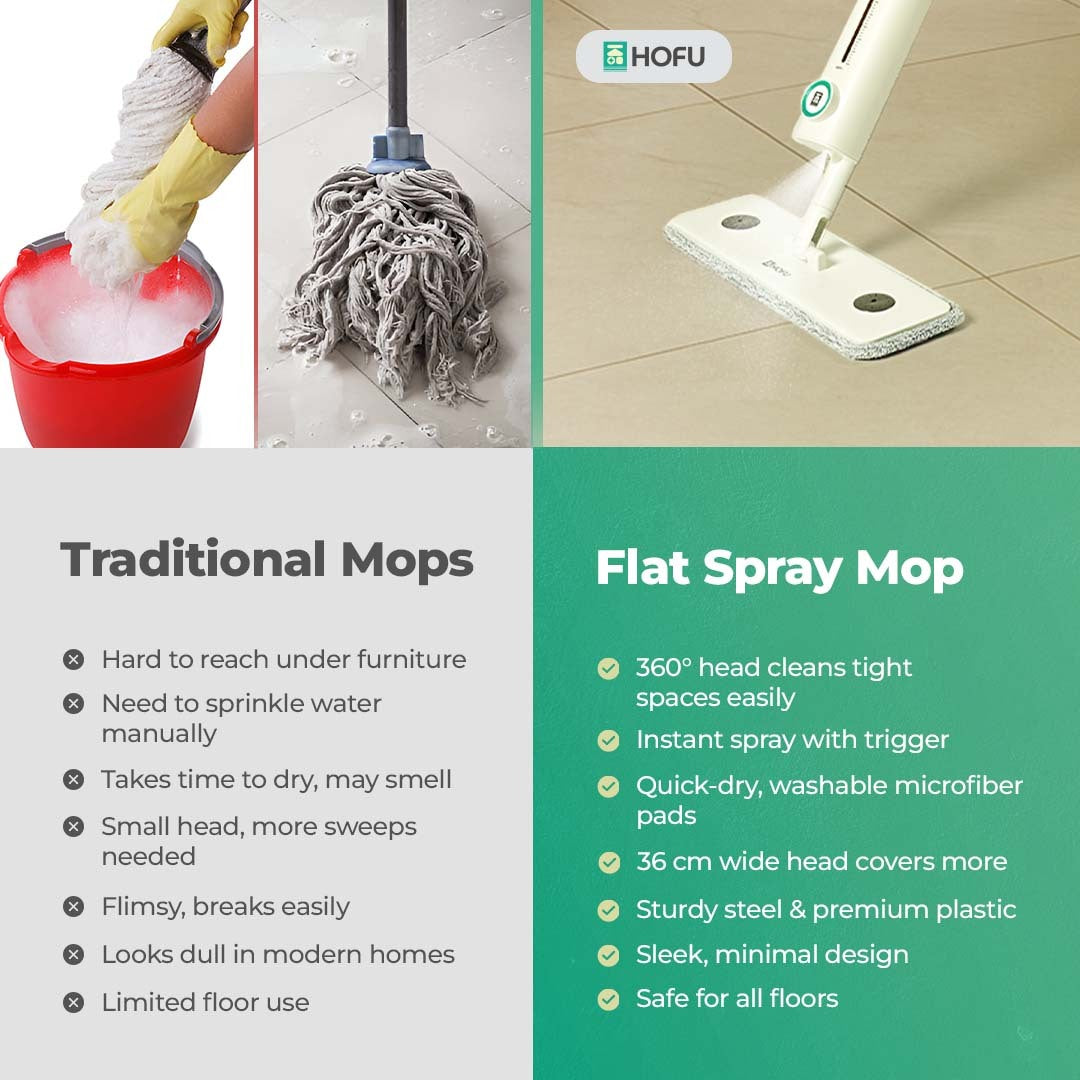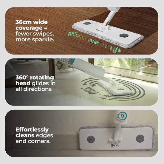 The HOFU Spray-R brings together intelligent design and effortless control for quick everyday cleaning. Enjoy on-the-go cleaning with its built-in spray system, 360° swivel mop head, and ultra-absorbent microfiber pads. Just spray and glide—cleaning has never been this smooth.